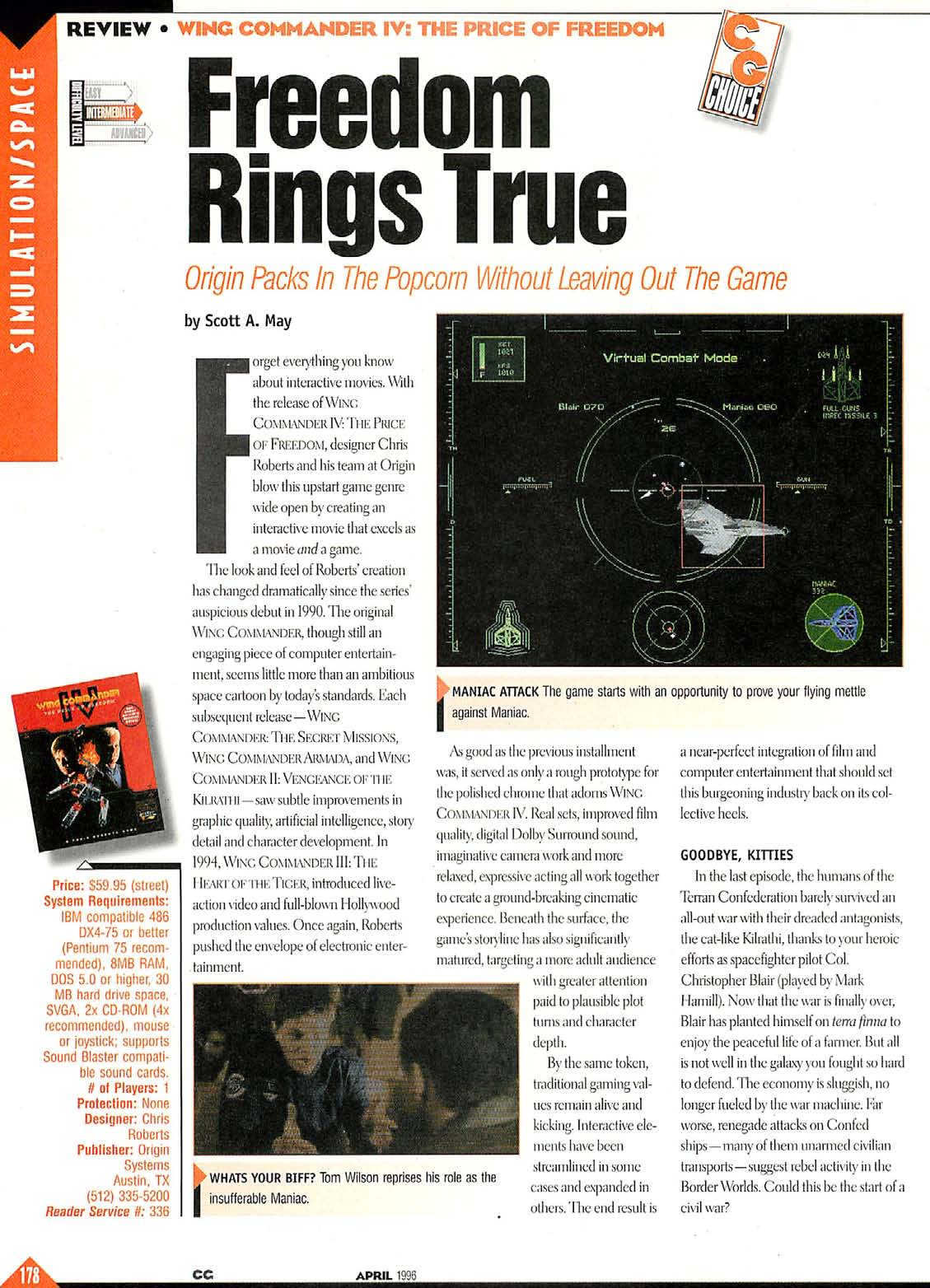 Wing Commander 4 review from Computer Gaming World 141, april 1996.