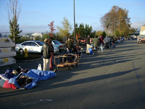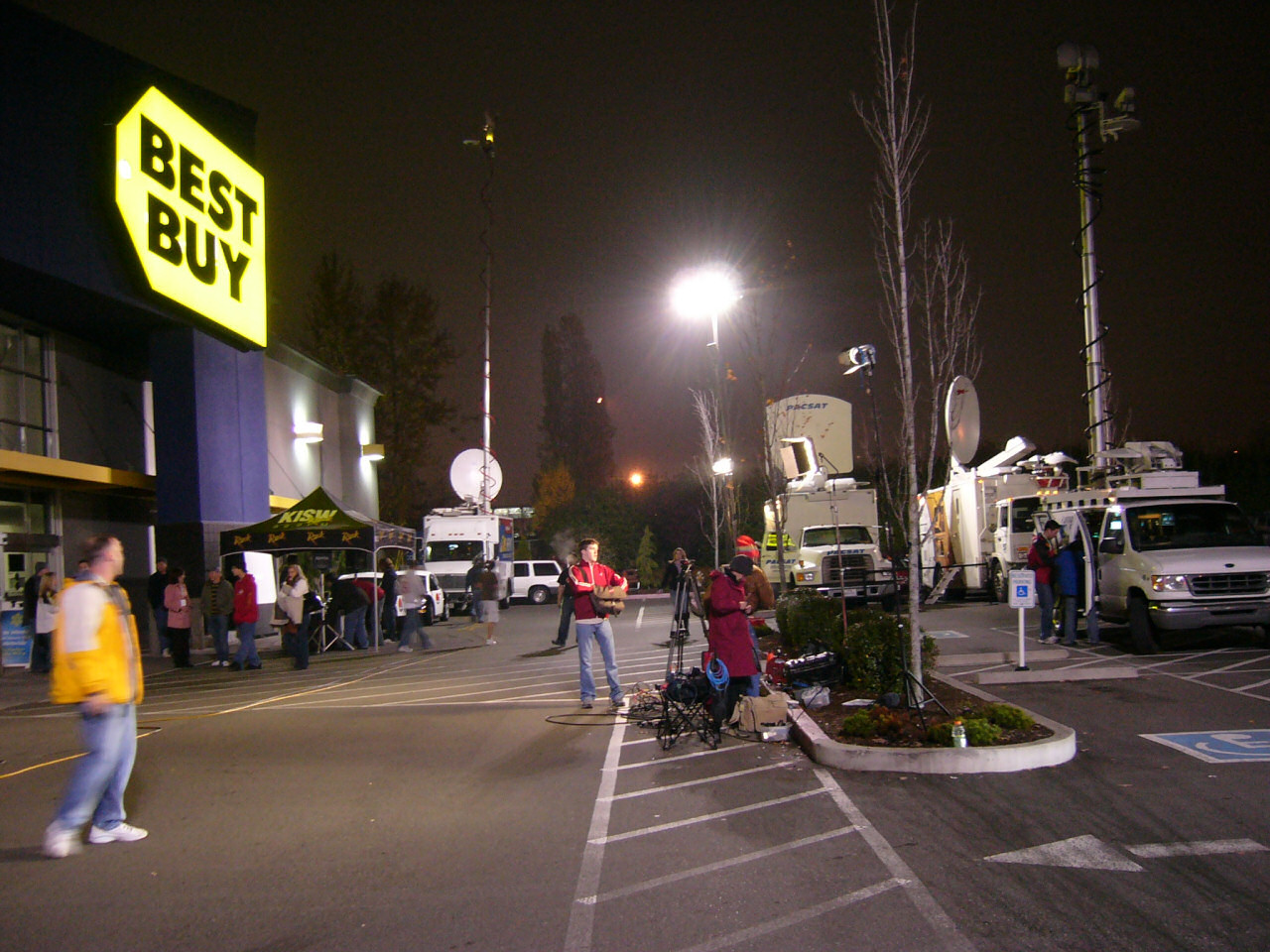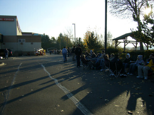 Ryan and I arrived around 2:00 pm and there were already about five hundred people in line (about half of which were buying xboxes, half there to support their friends). We were trying to hurry and see how far back the line went, so I missed taking daylit pictures of the line wrapped around the actual Best Buy. These start where the line broke off from the Best Buy and started going around the Home Depot.