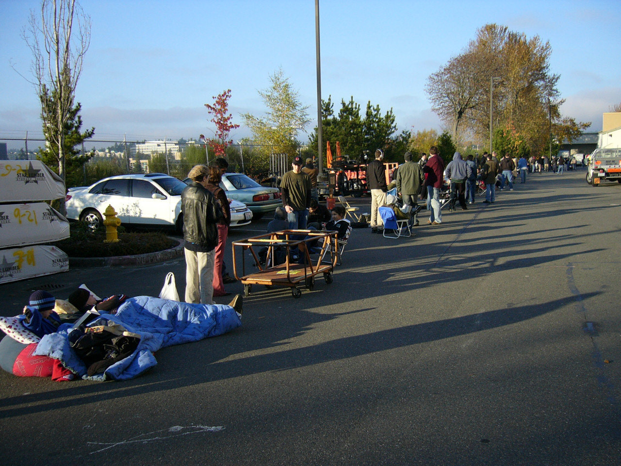 This was taken from our spot in line. You can see the Best Buy shipping area at the far end. The line took a right and wrapped around the Best Buy building from that point.