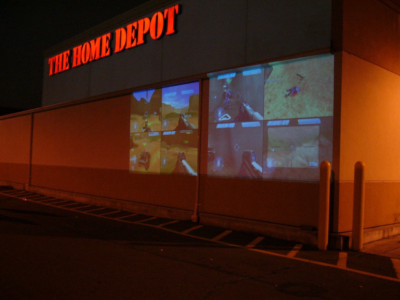 A number of people brought projectors. These two people system linked theirs and did 8 player Halo on the back of the Home Depot.