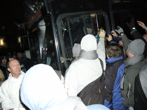So they decided to just throw stuff out the sides of their bus, but that got mobbed as well.