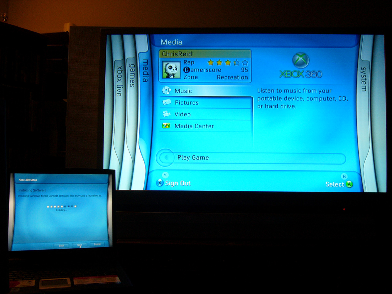 Connecting my laptop and 360 to share music and files over the network.