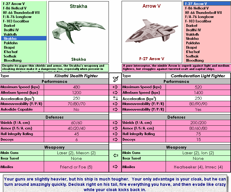 Now, in honor of WC3 being released on GOG, I've built a finished version featuring the ships from WC3. It is much improved over the original. I thought some in the community might get a kick out of playing with it, especially if they're old enough to remember Chuck Yeager's Air Combat. (There's a few little tributes to that old game in this comparer for the sharp-eyed with a good memory). And for rookies trying WC3 for the first time, the engagement advice might actually be useful in some cases.