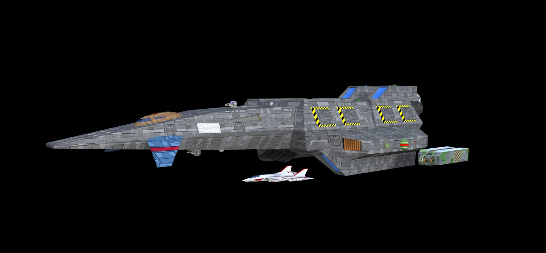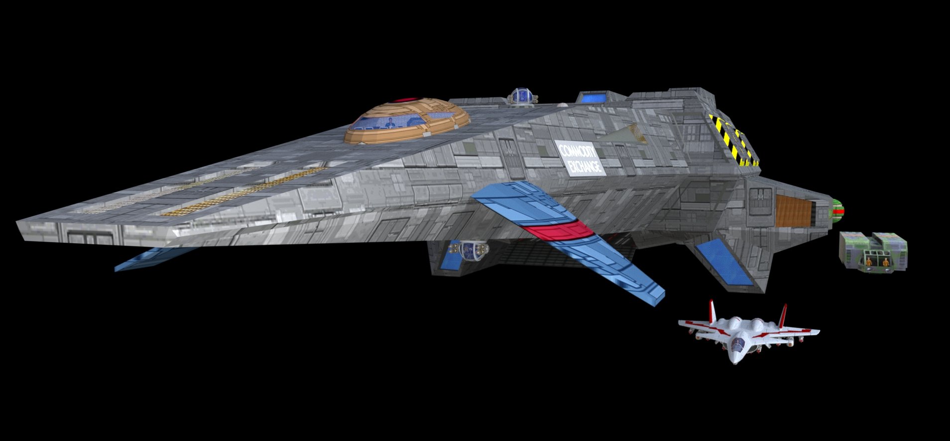 We've shown you some of Cybot's Wing Commander work before... and now they're back with an original take on Wing Commander II's Free Trader civilian freighter re-styled as it might appear in Wing Commander Privateer! You can download a copy of the model for yourself: