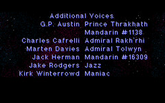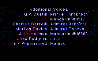 Who is Mandarin #1138? She is the barely-visible character heard communicating with Admiral Rakh'rhi in the second part of Special Operations 2's intro. She's voiced by G.P. Austin who was a writer on Wing Commander II and responsible for the screenplays for Privateer, Strike Commander and others! They went on to create the game Harvester, which is fondly remembered by a very particular sort of aging gamer.