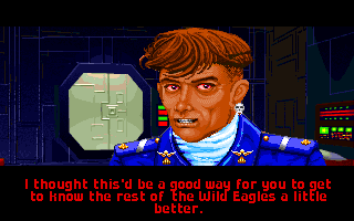 Wait, she? That's right, the ultimate reveal is that the Mandarin traitor sent to "get [Rakh'rhi] the Morningstar, even if you have to spill blood to get it" is Minx. They game is intentionally misleading you by giving her a deep, male-seeming (the G in G.P. stands for Gilbert) voice to help make it seem like one of the other Morningstar pilots (Crossbones, Talon or or even Maniac) is the traitor. Of course, this can only work because of one major omission: none of Minx's other lines are voiced; you don't actually fly with her as a wingmate!