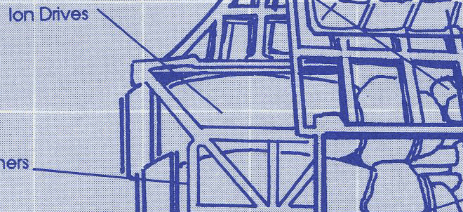 Origin Aerospace blueprint inset showing the ion drives on a Scimitar.