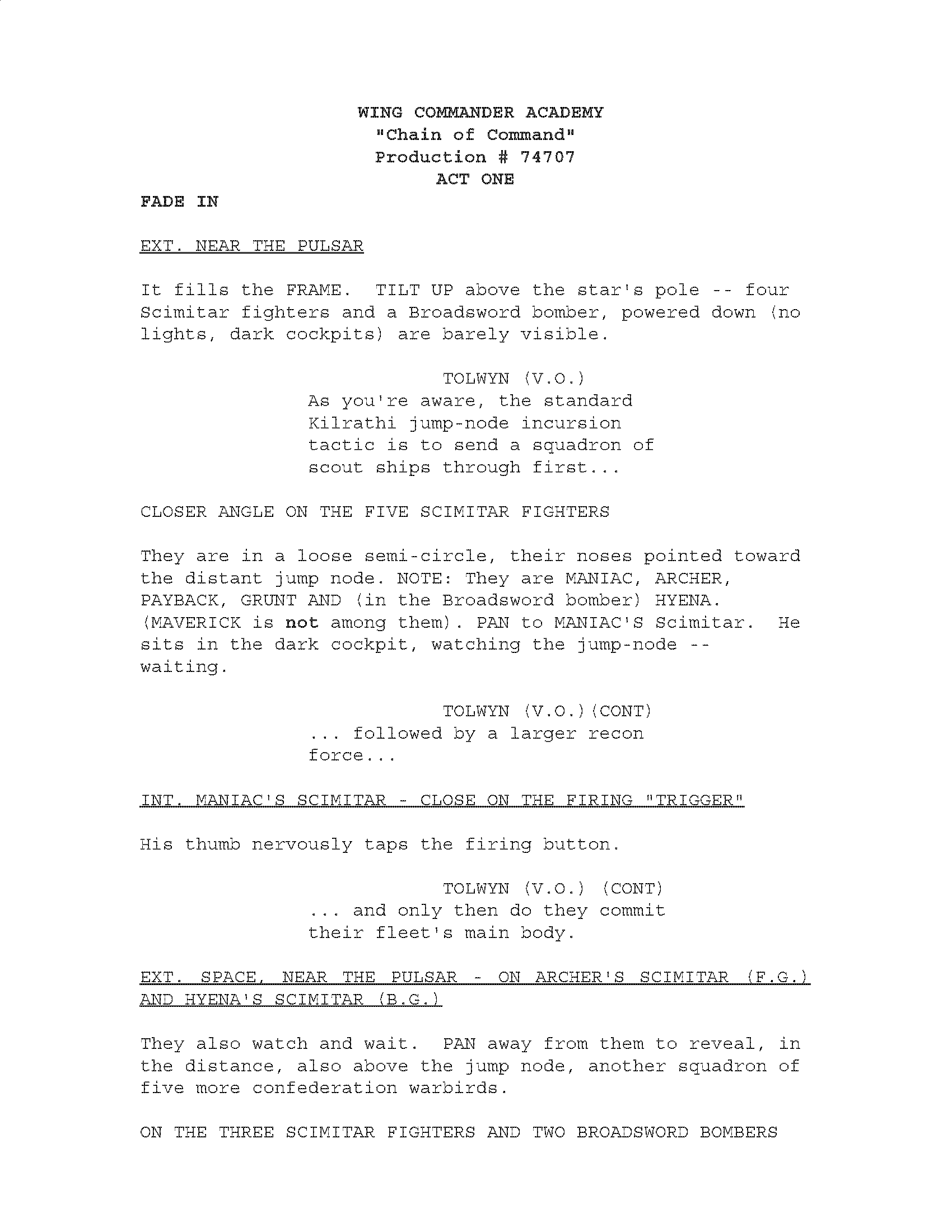 Wing Commander Academy - "Chain of Command" Script - Cover