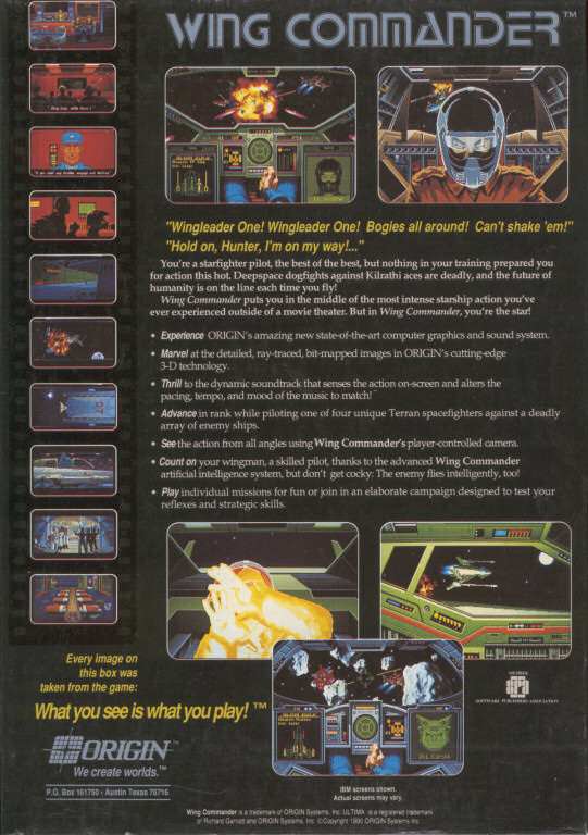 Back cover of the original Wing Commander box.